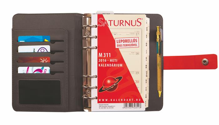 Kalendárium, gyűrűs, betétlapokkal, "S", műbőr, SATURNUS, "426", szürke-fekete